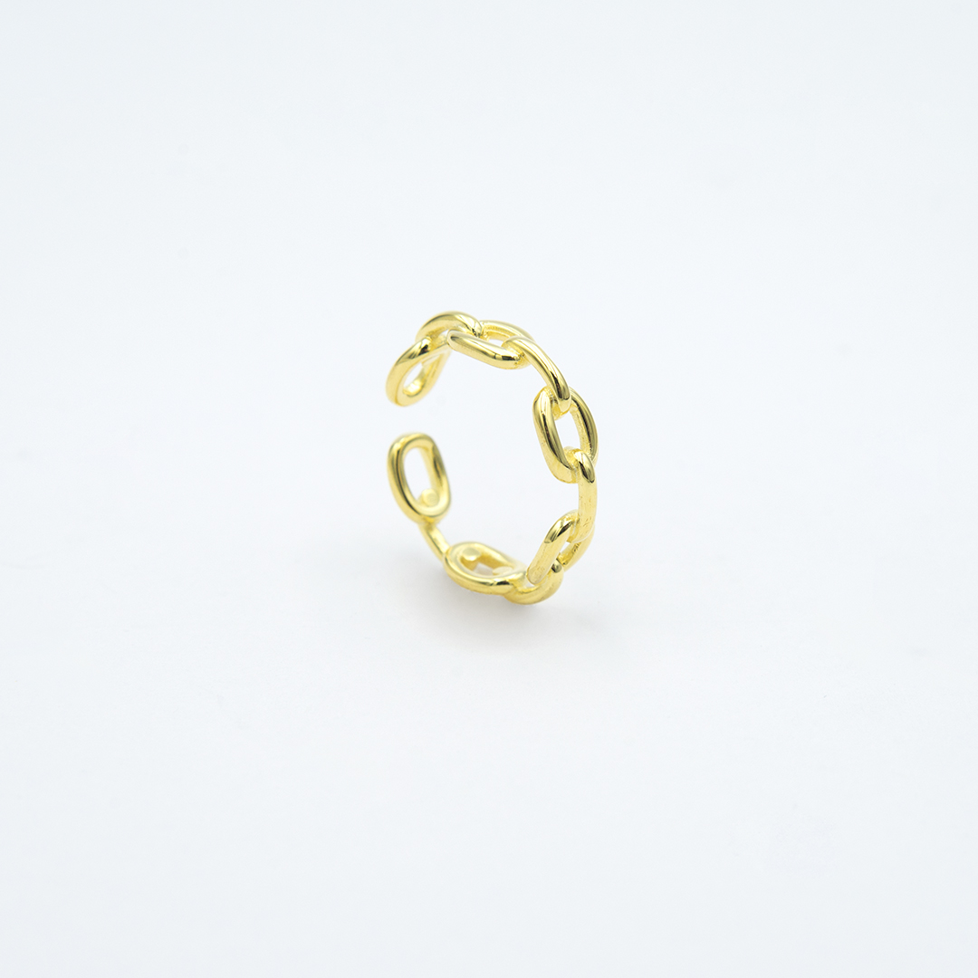 Anillo con eslabones rectangulares en plata de ley con un baño de oro amarillo , abierto para cualquier dedo y talla