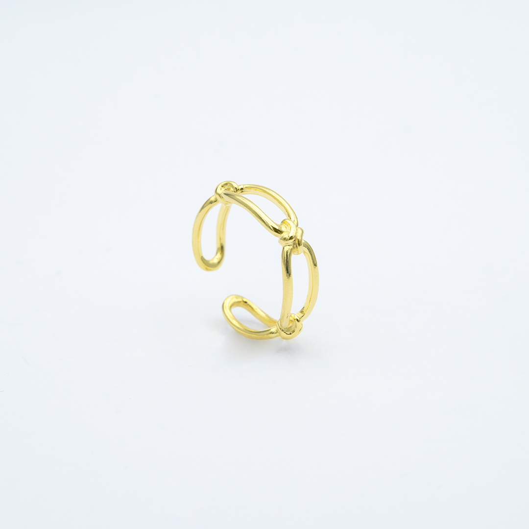 Anillo de cadena con eslabones grandes rectangulares en plata de ley CON UN BAÑO DE ORO,abierto para cualquier dedo y talla