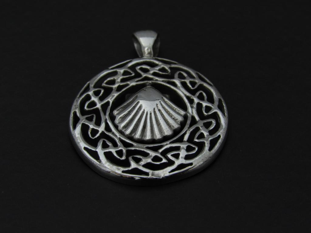 Dije de vieira, con un circulo de nudos celta, en plata 925