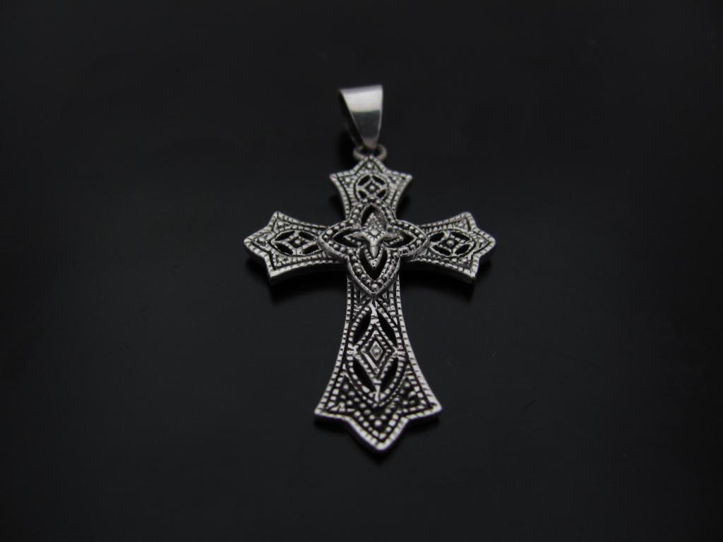 Colgante cruz con filigrana en plata de ley, hecho a mano