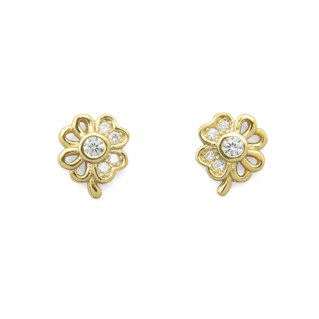 Pendiente de flor con circonita en plata de ley con un baño de oro