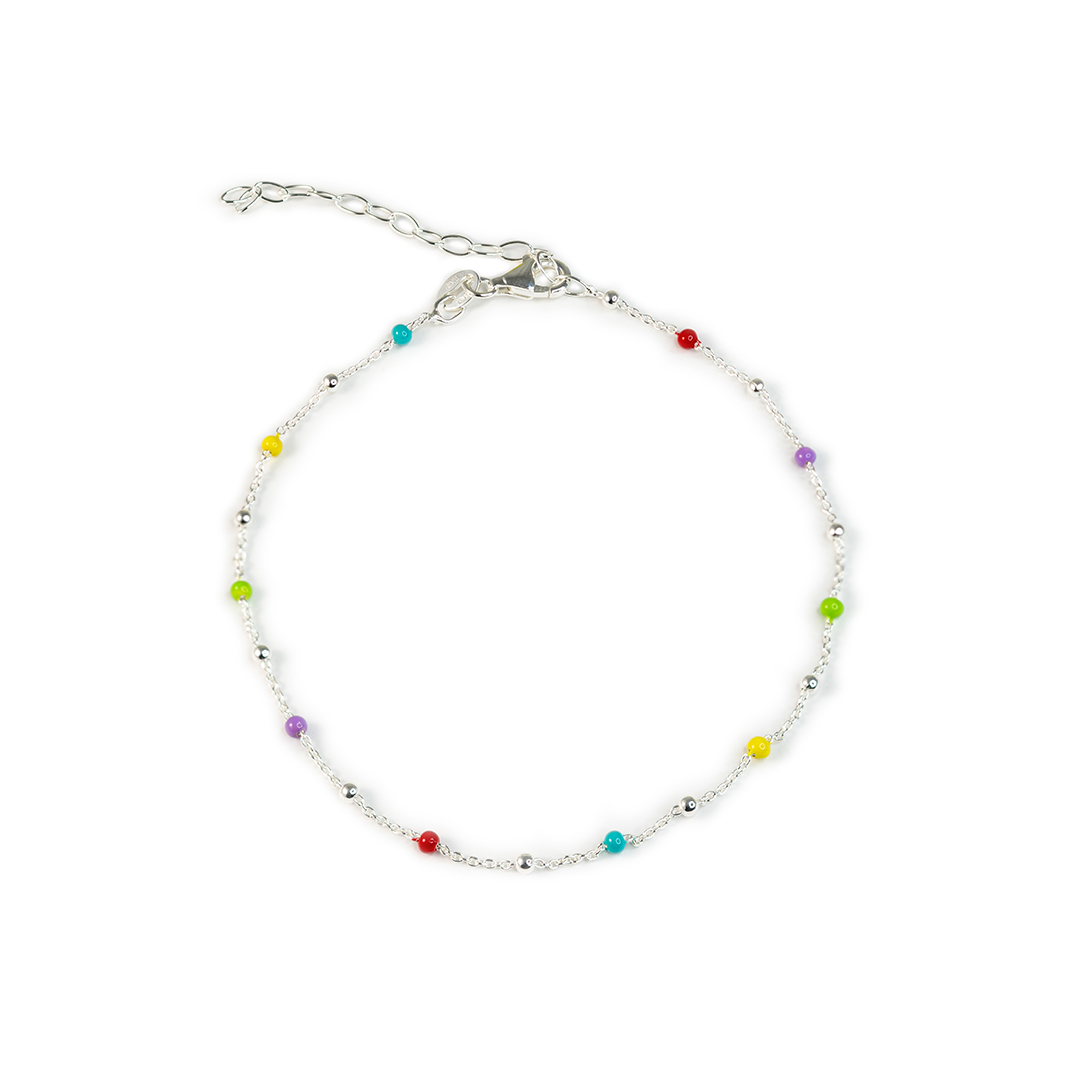 TOBILLERAS EN PLATA CON BOLAS ESMALTADAS DE 22 + 3